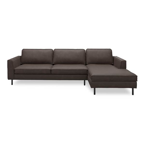 3 sits högervänd Soffa med schäslong, Granulat/fiberfyllning, kallskum, siddehøjde 48 cm. – Kentucky 1 earth bonded läder och ben i svart metall