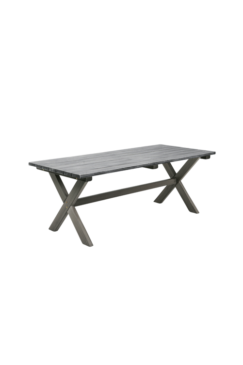 Bordet SHABBY CHIC har grålaserad borstad bordsskiva och grå ben. FSC-certifierad kärnfuru från Norrland. Material: Furu Höjd: 72 cm Längd: 195 cm Bredd: 86 cm Vidd mellan ben: 155 cm