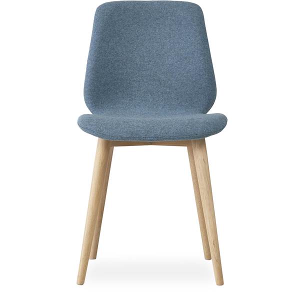 matstol, maxbelastning 110 kg och siddehøjde 48 cm. – Sits i 28 Dusty blue filt och curveben i vitpigmenterad mattlackad ek