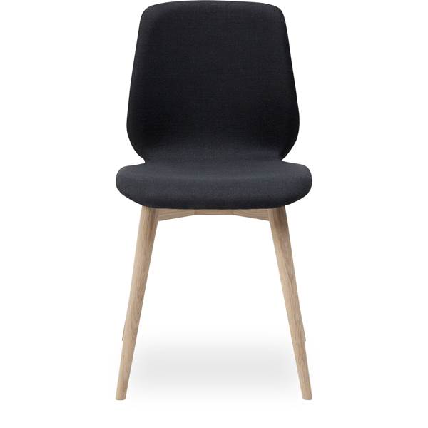 matstol, maxbelastning 110 kg och siddehøjde 48 cm. – Sæde corsica 10 charcoal tyg och curveben i vitpigmenterad mattlackad ek