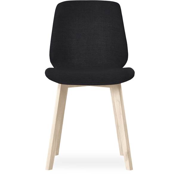 matstol, maxbelastning 110 kg och siddehøjde 48 cm. – Sæde corsica 10 charcoal tyg och edgeben i vitpigmenterad mattlackad ek