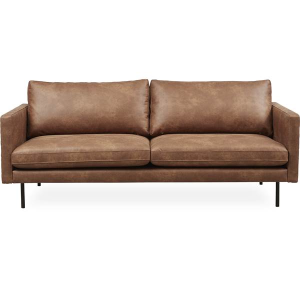 3 sits Soffa, kallskum, Granulat/fiberfyllning, siddehøjde 45 cm, exkl. kuddar. – Colorado 3 Cognac bundet läder och ben i svart metall