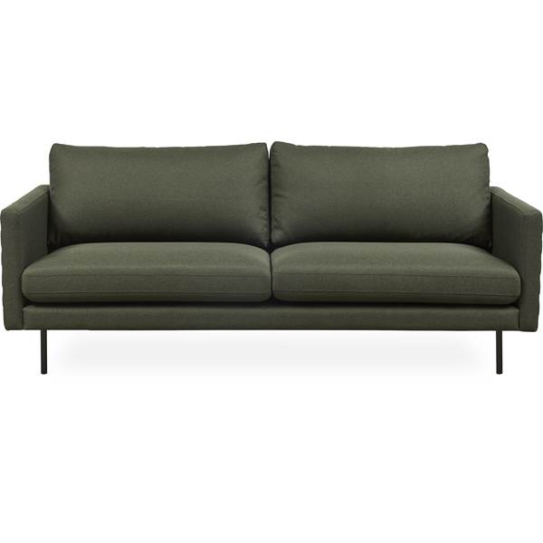 3 sits Soffa, kallskum, Granulat/fiberfyllning, siddehøjde 45 cm, exkl. kuddar. – Malmø 37 Green-tyg och ben i svart metall