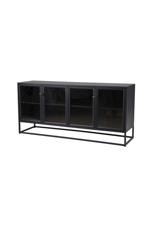 Sideboard i metall – tuff industrilook. Härdat glas. 4 Dörrar. Säljs i 1-pack. Bredd 167,50 cm, djup 45 cm och höjd 78,5 cm. Montera själv.