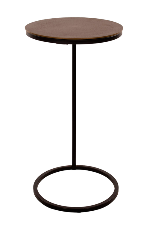 Svart och antik mässingsfärgat sidobord i metall.