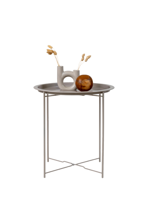 Sidobord av pulverlackerat stål i gråbeige färg Ø47×50,5 cm