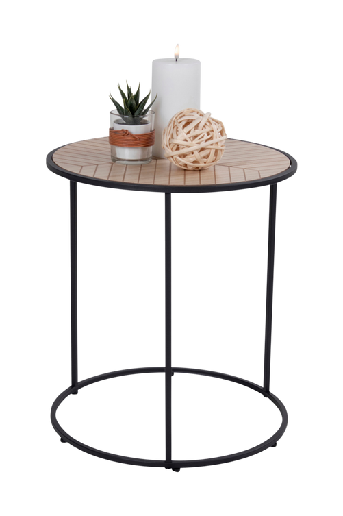 Soffbord i paulownia-fanér och ben i stål. Material: fanér, MDF, stål Levereras omonterad Mått: 40x40x45, 1.7kg