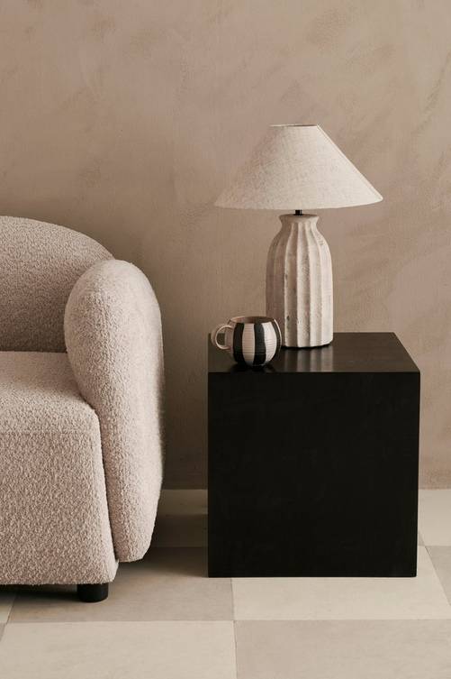 Kubformat sidobord i mangoträ med MDF i botten.
