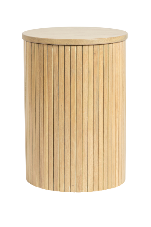 Runt litet sidobord med panelklädd fot. Perfekt som sidobord vid soffan eller fåtöljen eller varför inte mot väggen med en lampa eller växt på. Snyg att kombniera med soffbord i samma serie.