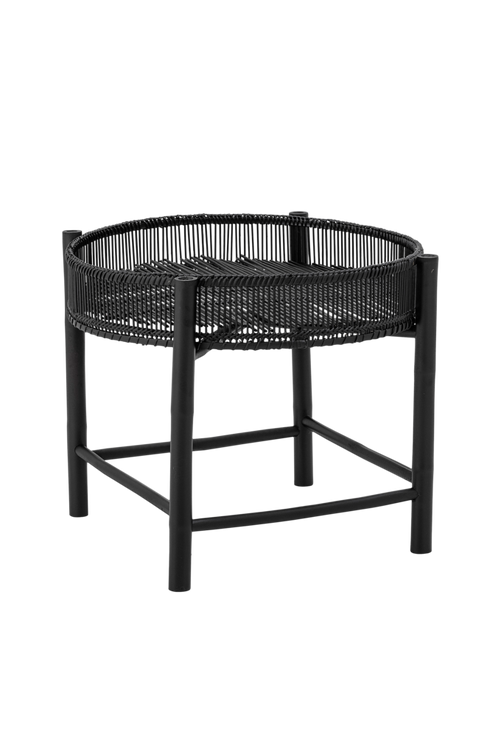 Sidobord av svartfärgad bambu. Ø 56 cm.