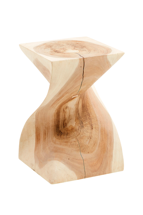Kvadratiskt sidobord/pall av massivt mungur-trä. Bredd: 30 cm. Djup: 30 cm. Höjd: 46 cm.