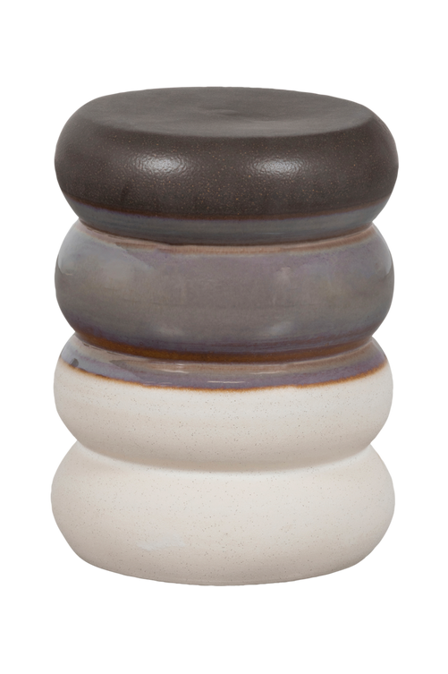 Rundat sidobord med fyra symmetriska ringar Keramik med glaserad beläggning Praktiskt som sidobord H 44 x Ø 34 cm Bulb sidobord är ett diskret tillskott i inredningen. Detta sidobord ingår i en kollektion från det nederländska märket vtwonen. Bulb har en glänsande, glaserad finish. Eftersom varje produkt är handgjord kan finishen variera från bilden. Detta gör varje produkt unik! Material Keramik bildas av modellerad, bränd lera. De keramiska föremålen i våra kollektioner är glaserade med ett matt eller glansigt lager, vilket ger ett slående utseende och extra skydd av materialet. Våra keramiska föremål passar för inomhus- och utomhusbruk, men tål inte hårt regn eller frost. Keramik är ett extremt värmebeständigt material, men som kan vara ganska poröst vid ovarsam hantering, så noggrant underhåll rekommenderas. Mått – Höjd: 44 cm – Diameter: Ø 34 cm – Maximal belastning: 15 kg OBS: Ett ojämnt tryck kan göra att keramiken spricker eller går sönder, därför krävs en jämn viktfördelning. Du kan inte stå på denna produkt. – Vikt: 7,5 kg Skötsel Keramiska föremål är lätta att hålla rena genom att använda ljummet tvålvatten och en mjuk trasa. Torka av ytan efteråt, för att undvika märken. Är keramikföremålet skadat? Repor kan fyllas med en reparationsvätska för keramik, men det ger inte ett osynligt resultat. Leverans Produkten levereras styckvis i ett paket. Sätt möbeltassar av filt undertill för att skydda hårda golv. Undvik att använda vassa föremål när du öppnar förpackningen eftersom de kan skada produkten.