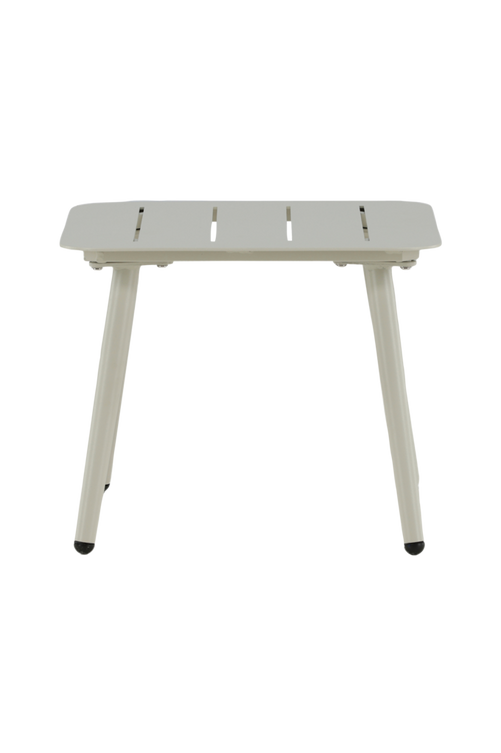 Lina sidobord med en bordstopp i aluminium och bordsben i stål. Bordet kräver enklare montering. Bordets mått: Längd: 40 cm, bredd: 40 cm, höjd: 33 cm.