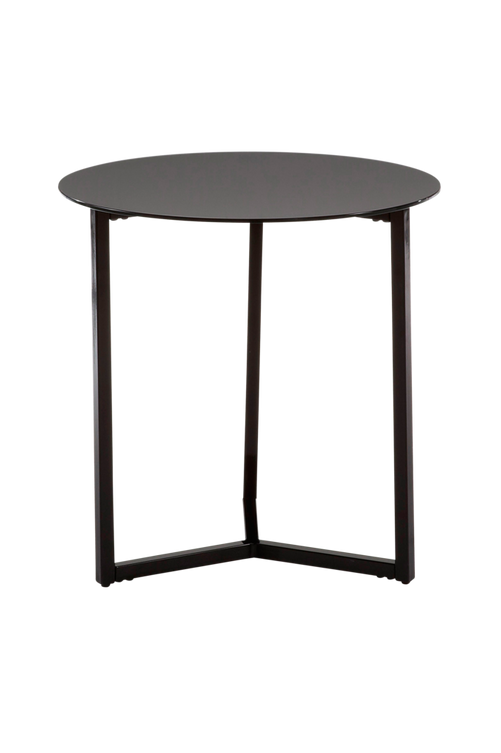 Soffbord med ben av epoximålat stål. Bordsskiva av svart, härdat glas. Höjd 50 cm Bredd 50 cm Djup 50 cm