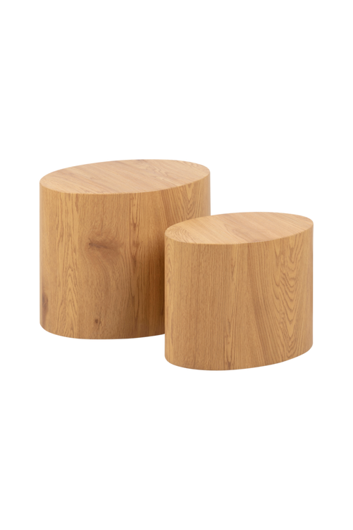 Sidobord set om två ovala. Av folierad MDF. Mått; Lilla bordet: 24,5 x 40, höjd 33 cm. Stora bordet: 33 x 48 , höjd 40 cm. Monterat.