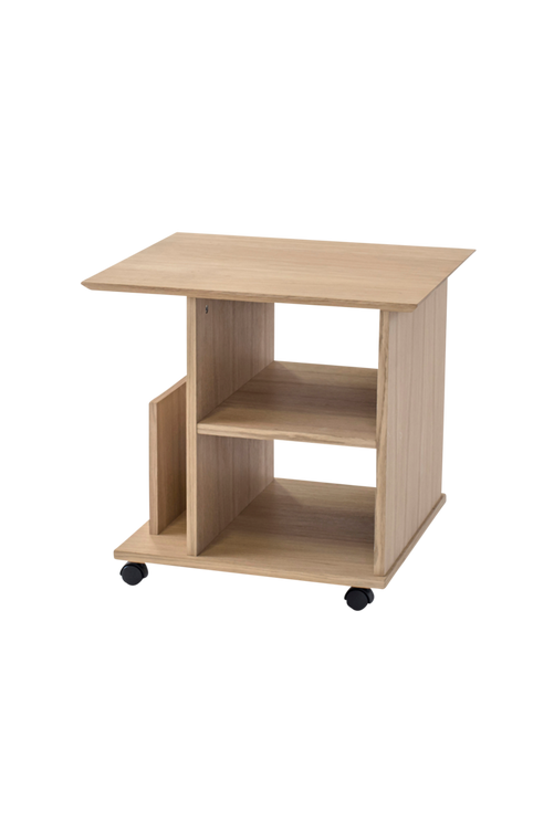 Sidobord i vitoljad ek. Bredd 60 cm. Djup 50 cm. Höjd 56 cm. Vikt 16 kg.