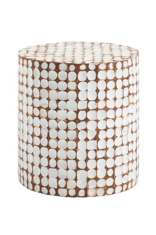 Sidobord av trä, täckt av kokosnöt. Bredd: 40 cm. Djup: 40 cm. Höjd: 42 cm.
