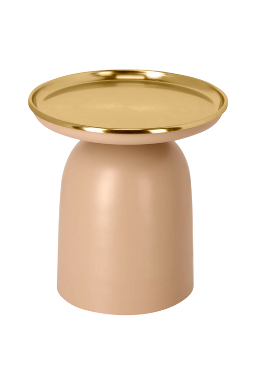 Neiva sidobord består av en beige metallskulptur med en rund, brickformad ovandel i guldfärg. Designen är anpassad för att passa perfekt i olika rum; från hallen till vardagsrummet och till och med i sovrummet som ett sängbord. Bredd: 38 cm. Djup: 38 cm. Höjd: 39 cm.
