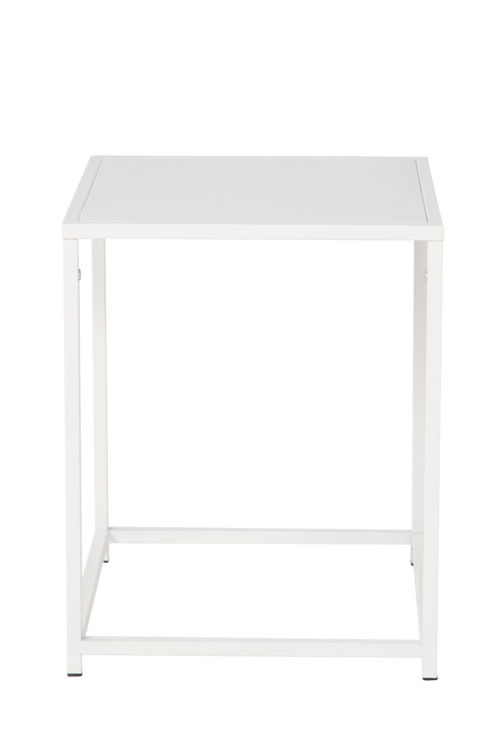 Sila sidobord i stål i en fyrkantig form. Perfekt för avlastning eller att ställa en vacker prydnad på. Mått 37 x 38, höjd 46 cm. Montera själv.