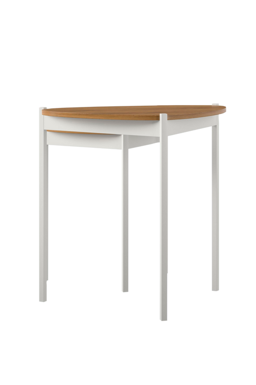 Få mer bordsyta i vardagsrummet med borden Tallulah från Novogratz. De är tillverkade av laminerad spånskiva med träfinish och har stabila pulverlackerade ben i metall. Använd borden var för sig eller skjut in det mindre bordet under det större för att spara golvyta. Den kompakta designen passar perfekt i små lägenheter och mindre rum. Bordsskivans unika form kommer att ta din inredning till nya nivåer. Borden levereras i ett platt paket och kräver minimal montering. Efter montering mäter det stora bordet H61 x B60 x D40 cm och det mindre bordet H53 x B45 x D29 cm.
