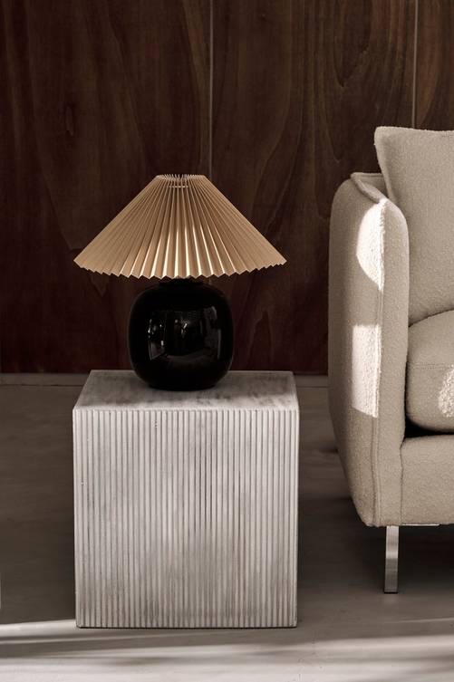 Sidobord i vitlaserat mangoträ med ribbad struktur på sidorna. Levereras monterat.