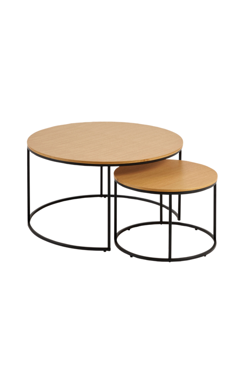 Kave Home har skapat kollektionen Yoana, en mångsidig design som kan anpassas till alla hem och stilar. Upptäck den fina kombinationen av ek faner och pulverlackerad metall. Mått; Stora bordet, diameter 80, höjd 45 cm. Lilla bordet, diameter 50, höjd 34 cm.