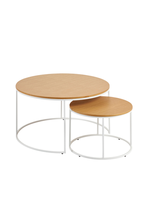 Kave Home har skapat kollektionen Yoana, en mångsidig design som kan anpassas till alla hem och stilar. Upptäck den fina kombinationen av ek faner och pulverlackerad metall. Mått; Stora bordet, diameter 80, höjd 45 cm. Lilla bordet, diameter 50, höjd 34 cm.