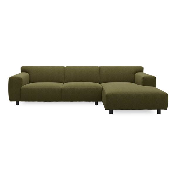 3½ pers högervänd Soffa med schäslong, inkl. ben, siddehøjde 42 cm. – Manchester 1445-26 Green textil, ben i svart metall och sits/rygg: kallskum med fiberfyllning