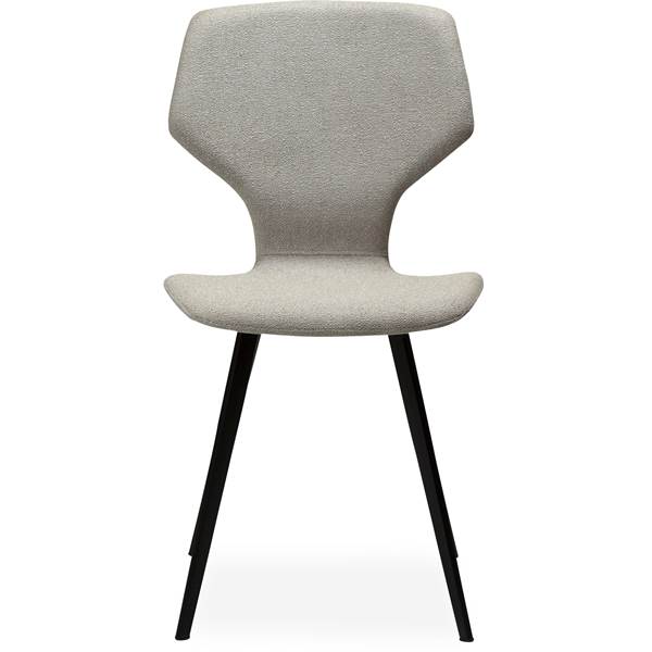 matstol, maxbelastning 120 kg, siddehøjde och FSC Mix 70 %. – Sits i cashmere creme bouclé tyg och ben i svart pulverlackerad metall