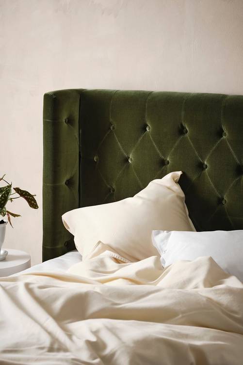 Fristående gavel klädd med sammet och djuphäftade klädda knappar. Går även att hänga upp på väggen. Du skapar en lyxig hotellkänsla hemma med en djuphäftad sänggavel med vingar. Allt i finaste sammet av bomullsmix. Material: 89% bomull, 11% polyester, trästomme och skumgummifyllning. Storlek: Gavelbredd 130 cm. Sängbredd 120 cm. Höjd 122 cm. Djup 10 cm. Skötselråd: Dammsugning. Tips/råd: Förutom bekvämt stöd för ryggen får du ett mjukare intryck med en stoppad sänggavel. Väggfästen medföljer.