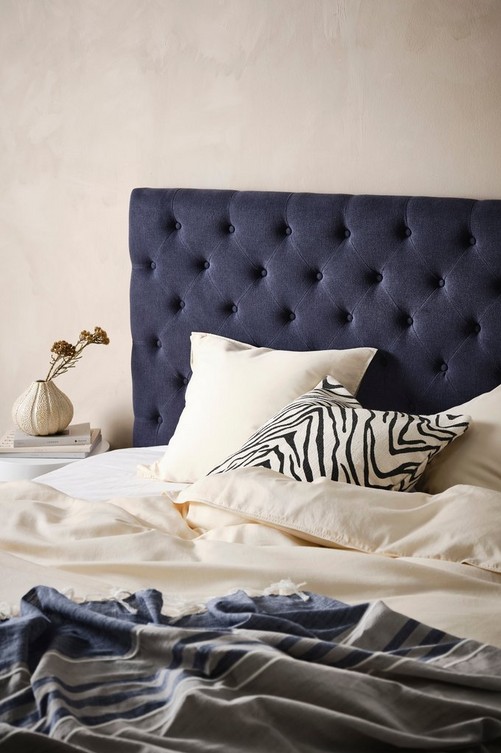Fristående gavel klädd med linne och djuphäftade klädda knappar. Skapa hotellkänsla i sovrummet med en djuphäftad sänggavel i finaste linne. Väggfästen medföljer. Material: 100% lin, trästomme och skumgummifyllning. Storlek: Bredd 180 cm. Höjd 122 cm. Djup 10 cm. Skötselråd: Torkas med fuktig trasa. Tips/råd: Förutom bekvämt stöd för ryggen får du ett mjukare intryck med en stoppad sänggavel. Gaveln behöver ingen montering, ställ den bara mellan säng och vägg.