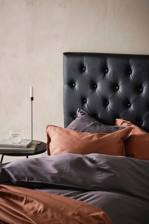 Fristående gavel klädd med konstskinn och djuphäftade klädda knappar. Skapa en personlig stil och lyxig känsla i sovrummet med en gedigen sänggavel i finaste konstskinn. Väggfästen medföljer. Material: 100% konstskinn, trästomme och skumfyllning. Storlek: Bredd 90 cm. Höjd 122 cm. Djup 10 cm. Skötselråd: Torkas med fuktig trasa. Tips/råd: Gaveln behöver ingen montering, ställ den bara mellan säng och vägg. Bädda som på hotell med lyxiga sängkläder.