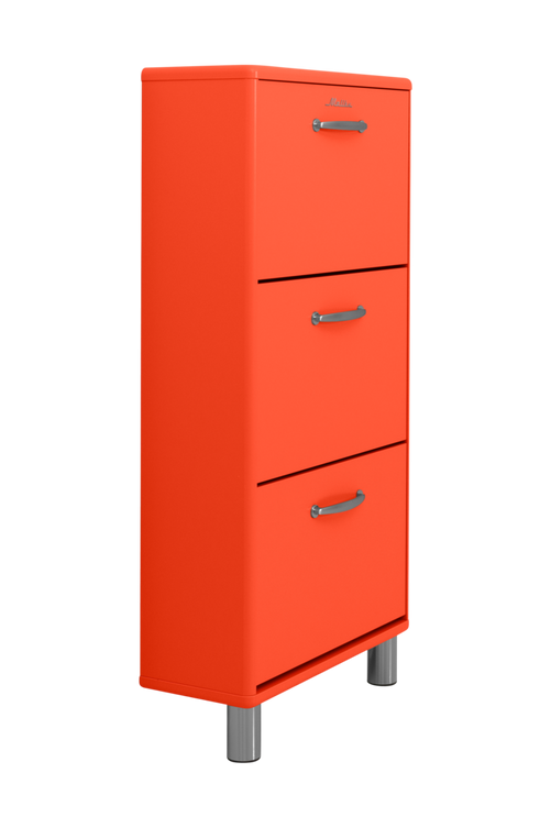 Rebellen. 50- och 60-talet andades frihetskänsla. Ungdomar bröt sig loss från det traditionella sociala normerna man ville inte leva efter den äldre generationens föreställningar eller följa gamla mönster. Istället uttryckte de sig genom musik, mode och bilar. Nya subkulturer växte fram Rock n Roll och surfing lät de unga njuta av sin frihet och uttrycka sig själva. Denna unga generation ville slå sig fria från samhället de föddes i, de ville vara annorlunda, de ville visa vilka de var. Tack vare dessa unga människor är Malibu annorlunda och uttrycker vem du är. Malibu är ung, rebellisk och färgstark! Malibu är inspirerad av stilen och tankarna från de unga på 50- och 60-talet. Rutger Andersson har skapat en färgstark retrodesign som förmedlar en känsla från tiden då frihet och självuttryckandet föddes. Sammanflätningen av modernitet och retrodesign gör möbeln tidlös och unik. Malibu är tillverkad i Sverige i lackad MDF & spånskiva, hantag och ben matt nickel. Malibu ger stora förvaringsmöjligheter. Plats för 12-16 par skor Levereras omonterad