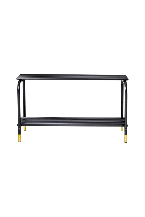Skohylla i mattlackad metall. Fin detalj med mässingsfot.