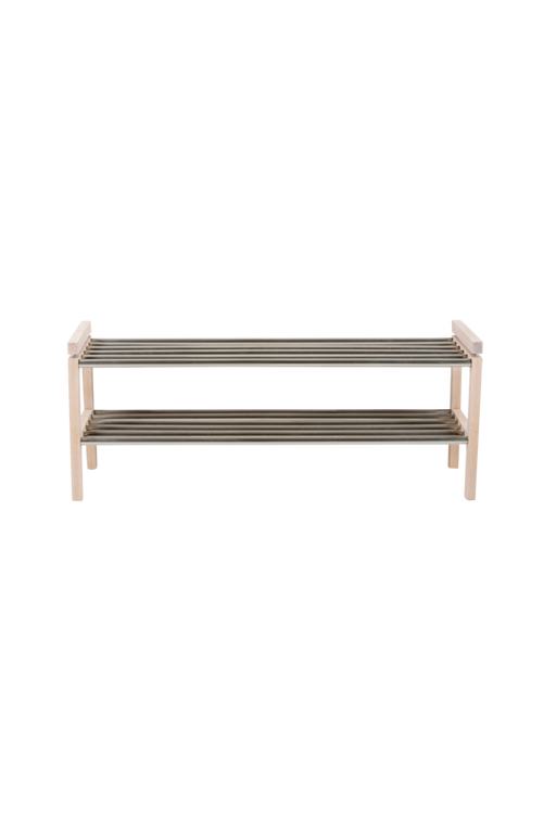 Confetti skoställ.Dekorativa ribbor i metall. Bredd 100 cm, höjd 40 cm, djup 30 cm. Stilren och enkel att placera. Skostället ingår i vår hallserie Confetti.