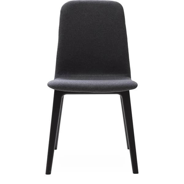 matstol, ej stapelbar, maxbelastning 110 kg och siddehøjde 46 cm. – Touche 99 grått tyg och ben i wengebetsad ek