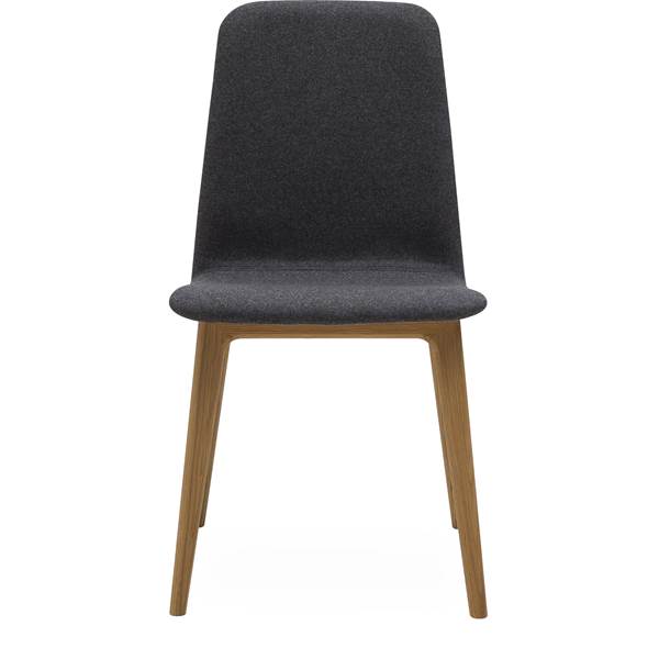 matstol, ej stapelbar, maxbelastning 110 kg och siddehøjde 46 cm. – Touche 99 grått tyg och ben i vitoljad ek