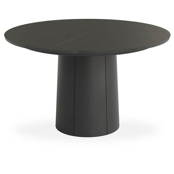 Matbord, Utdraget mått 149 cm, . . – Topp i svartbetsad ekfaner och sockel i svartbetsat ekfaner