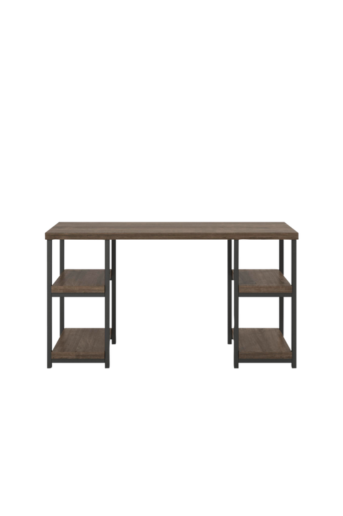 Skapa ett riktigt funktionellt hemmakontor med det multifunktionella skrivbordet Ashlar Desk. Det har en rustik grå finish med bruna undertoner som ger en sliten look. De fyra öppna hyllorna rymmer allt du behöver ha i ditt hemmakontor, från skrivare och skanner till papper, pennor, skrivbok med mera. Pimpa med accessoarer och känn dig som hemma! De stabila mörkgrå metallbenen stöttar upp bordsskivan och fördelar vikten. Skrivbordet levereras i ett platt paket och kräver montering. Vi rekommenderar att två vuxna monterar produkten.