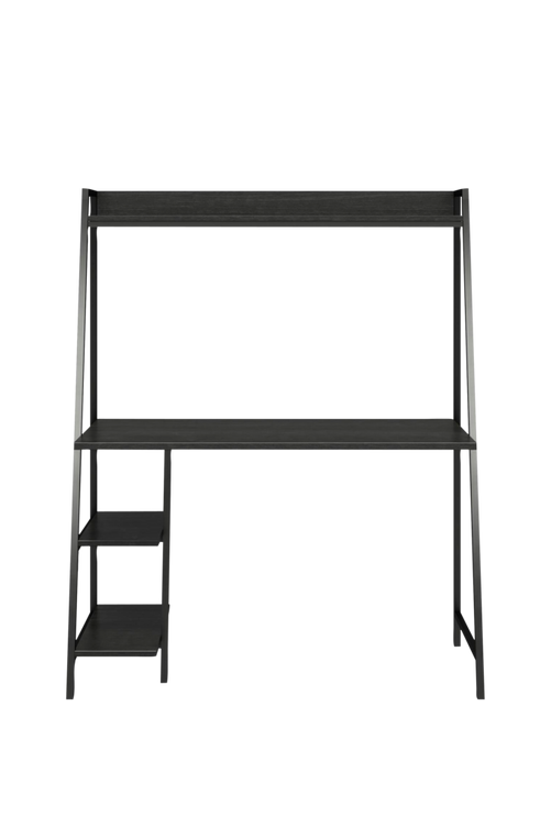 Form möter funktion i det snygga och multifunktionella skrivbordet Bushwick Ladder Desk från Novogratz. Det är perfekt för lägenheter, studentrum och mindre utrymmen tack vare en kompakt arbetsyta, hyllor och öppen baksida. Varför inte sätta en anslagstavla eller spegel på väggen ovanför bordsskivan? Förvara skrivböcker och kontorsmaterial på de två hyllorna till vänster och ställ prydnader, dekorationer eller böcker på den översta hyllan. Skrivbordet är tillverkat av konstruerat trä och pulverlackerad metall och finns i flera färgkombinationer. Montering krävs. Vi rekommenderar att två vuxna monterar produkten. Mått efter montering: B111 x D51 x H137 cm. Vikt efter montering: ca 20 kg.