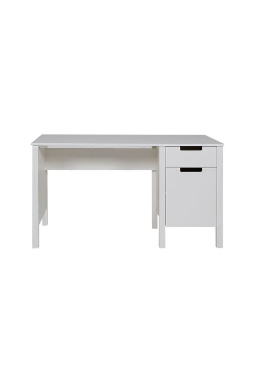 Skrivbordet Jade har en låda och bakom skåpsdörren finns förvaringsfack. Skrivbordet är tillverkat av massiv tall i färg. Levereras omonterad med tydliga monteringsanvisningar.