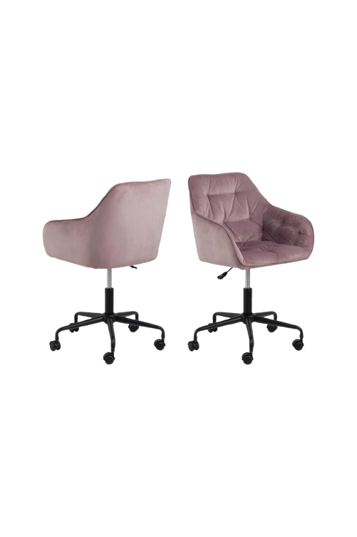 Den perfekta skrivbordsstolen för dig som söker både komfort och stil. Det som gör skillnad är det mjuka sammetstyget och de tuftade detaljerna, som ger stolen en lyxig känsla. Sammetstygets färg skiftar beroende på ljuset och riktningen på luggen, vilket ger en levande, lyxig känsla. För att göra dina dagar enklare snurrar du lätt, tack vare det 5-armade fotkrysset av metall, och justerar höjden med gasliften.