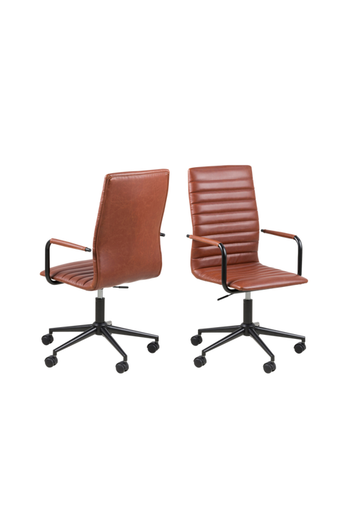 Klassisk men ändå modern skrivbordsstol som passar alla hemmakontor. Sits och ryggstöd i konstläder och underrede i svart metall. Montera själv. Mått: Höjd: 103 cm. Bredd: 45 cm. Djup: 58 cm. Sitthöjd: 52 cm. Sittbredd: 44,5 cm. Sittdjup: 42 cm. Rygghöjd: 53 cm. Höjd på armstöd: 20 cm.