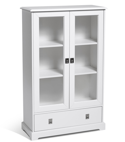 Material, MDF/härdat glas. MDF i stomme, MDF och härdat glas i dörrar.