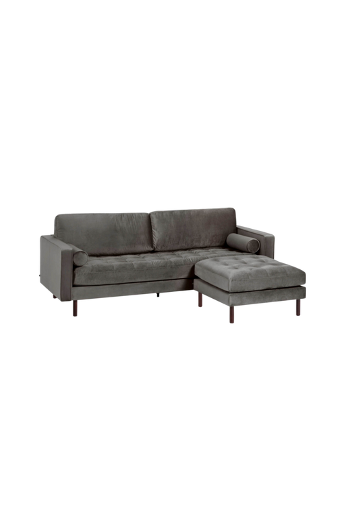 Debra 3-sitssoffa med puff är trendskapande tack vare dess design, textur och färg. Klädd med rosa sammetstyg, stoppad med djuphäftade knappar och synliga sömmar, är den designad för ett trendigt hem. Dessutom är tyget avtagbart, så du kan se till att den alltid är i perfekt skick, snabbt och lätt. Känn dig bekväm och njut av denna designersoffa. Bredd: 222 cm. Djup: 178 cm. Höjd: 103 cm.