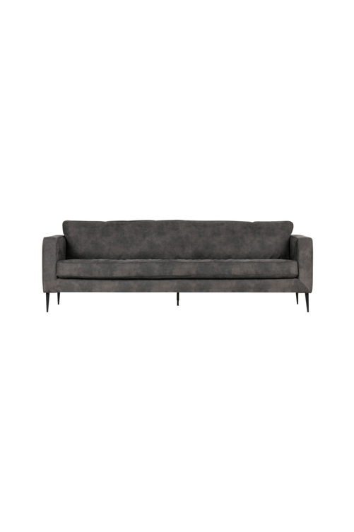 CREW 3-sits soffan är från det holländska märket vtwonen. Soffan är klädd med ett 100% Polyester-tyg, Martindale 35.000, detta tyg har ett mockautseende. Ramen består av massivt trä, mjukt trä, plywood, spånskiva och massivt trä. Sittkuddarna är fyllda med kallskum 3037, ryggkuddarna är fyllda med en blandning av skuren kallskum med silikonkula. Soffan har sicksackupphängning. Mått: sitthöjd på 46 cm, en sittbredd på 210 cm och ett sittdjup på 60 cm. Armstödet har en bredd på 13 cm och en höjd av 67 cm. Soffan har metallben, benen är 18 cm höga. Vikt på 58 kg. Använd inte starka rengöringsmedel. Fläckar bör tas bort omedelbart med lätt fuktig bomullstyg, cirkulär rörelse från utsidan till insidan.