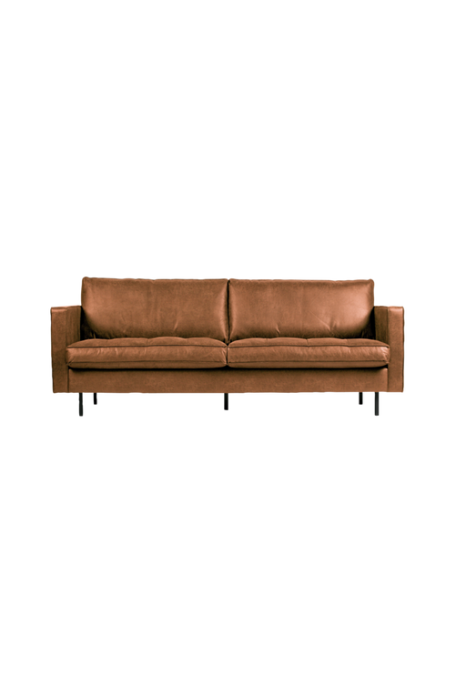 Denna soffa i 2,5-sits har sittdynor som ger soffan en klassisk touch. Soffan är generös, erbjuder gott om sittplatser och har ett tåligt tyg. Återvinningsläder. Den smala ramen och lösa kuddar gör att soffan ser subtil ut i vardagsrummet. De lösa kuddarna är inte vändbara. De 16 cm höga benen är gjorda i metall med svart yta. Sitsens höjd är 47 cm, sittdjupet är 58 cm, sittbredden är 206 cm, ryggstödet är 49 cm hög. Bredden på armstöden är 12 cm och höjden på armstöden är 70 cm. Ramen på soffan består av massivt trä, spånskiva, bäverkort och kartong. Bänken har en sicksackupphängning. Sitsen har en kallskumfyllning T3037, ett standardkallskum med hög hållbarhet och bekväm sittkomfort. Baksidan har en fyllning av 70% skuren kallskum och 30% silikon. Vad är återvunnet läder? Vid skärning av hudens mönster har fabriken rester. Dessa rester är krossade och vi gör ett nytt tyg: återvunnet läder. Återvunnet läder består av 70% äkta kohud och 30% polyester. Tyget består av två material: basskiktet består av återvunnet äkta läder, vilket ger det ett naturligt och unikt utseende. Lädret är skyddat av en polyesterbeläggning som förhindrar ojämnhet och gör det till ett robust kombinationstyg. Skinnets tjocklek är 0,90 – 0,95 mm, tjockleken på polyestertyg på toppen är 0,25 mm. Underhåll: Det återvunna läderet kan inte behandlas med fett för läder. Återvunnet läder kan underhållas enligt följande: med en fuktig trasa kan du rengöra tyget. Vid fläckar kan du använda en neutral tvållösning för att ta bort fläckarna. Torka av tyget med en fuktig trasa efter att du har tagit bort fläcken.