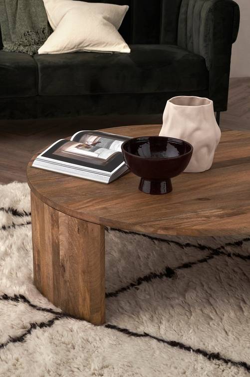 Runt bord i mangoträ med heltäckande färg. Höjd 41 cm, diameter 110 cm. Enklare montering.