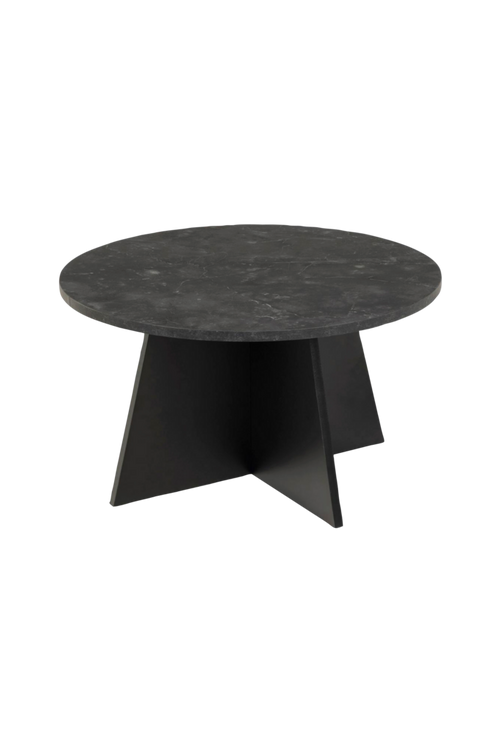 Soffbord med fyrkantig, vinklad stomme och rund bordsskiva, som kombinerar form och silhuett för att skapa en modern, estetisk möbel som imponerar i hemmet. Bordsskivan liknar marmor och är tillverkad av melamin, som ger bordet en imponerande stil. Soffbord med exklusiva designrättigheter, designat av vår egen designer Lasse Cha Pedersen.