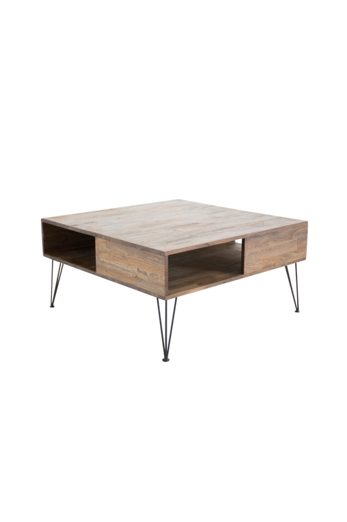 Bangkok soffbord med en topp i teak och bordsben i metall. Bordet kräver enklare montering.